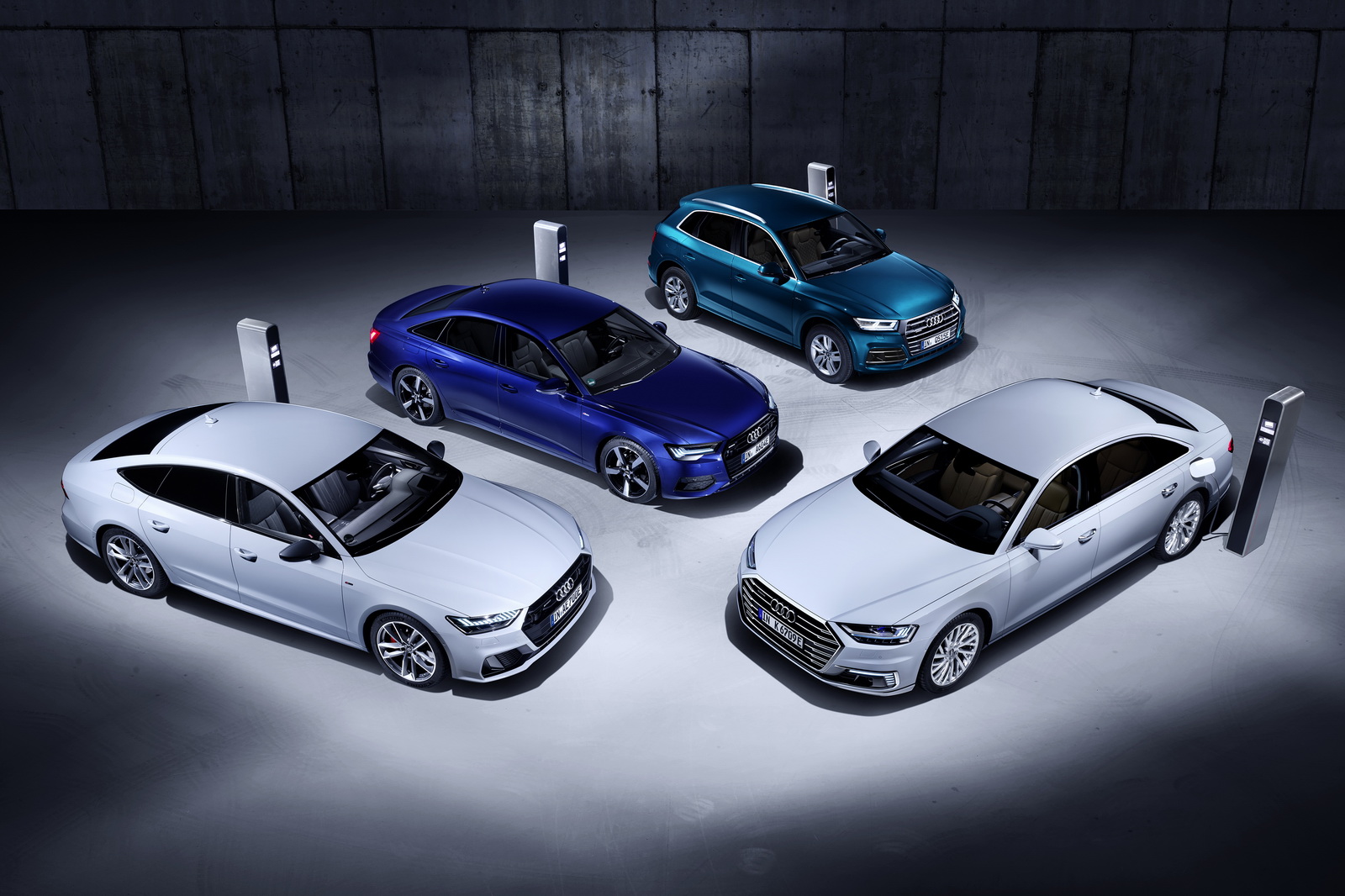 IBRIDO “VERO” - Le Audi A6, A6 Avant e A8 sono omologate come ibride in Italia, ma il sistema mild hybrid di cui sono dotate non consente loro di muoversi a zero emissioni nemmeno per brevi tratti. Al Salone dell’automobile di Ginevra 2019 (7-17 marzo), però, verranno mostrare in anteprima le versioni ibride plug-in, quindi con batterie ricaricabili dalla presa di corrente e un motore elettrico dalla potenza maggiore, di ben tre modelli: Audi A6, Audi A7 Sportback, Audi Q5 e Audi A8, che garantiscono fino a 40 km di marcia spinte dal solo motore elettrico con un “pieno” di energia. Il motore elettrico resta in funzione fino alla velocità massima di 160 km/h.