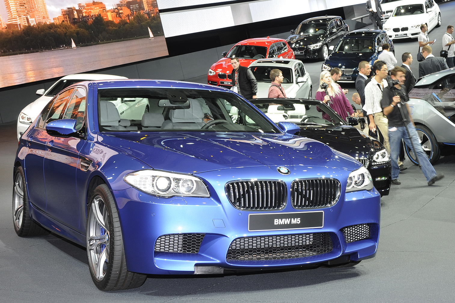 ASPETTO PIÙ GRINTOSO - Attesa nelle concessionarie per il mese di novembre, al Salone di Francoforte la BMW ha ufficialmente presentato la nuova M5. A distinguere il modello più potente dal resto della gamma Serie 5 ci pensano i dettagli: il frontale è stato reso più aggressivo grazie a un paraurti ridisegnato con tre grosse prese d'aria e griglie a nido d'ape. Sulla fiancata, appena dietro il passaruota anteriore è comparso un sfogo dell'aria calda che incorpora anche l'indicatore di direzione, mentre nella coda spiccano i terminali di scarico sdoppiati e il piccolo spoiler sulla sommità del baule.