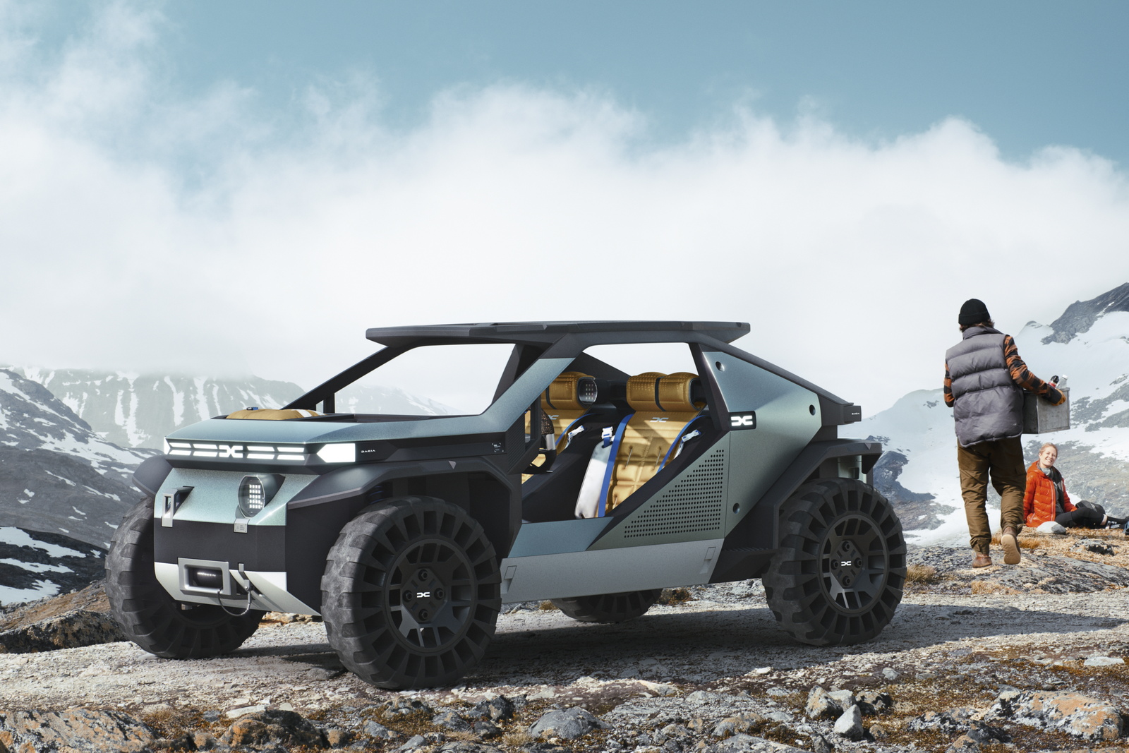 LA CONCEPT MANIFESTO COME LABORATORIO - Nell’occasione, la Dacia ha anche presentato una concept car per outdoor, la Dacia Manifesto (nelle foto qui sopra). Definita come un laboratorio di idee, alcune delle quali potranno essere riprese sui modelli di serie. Un’auto che, priva di vetri, incarna i valori della marca, all’insegna della semplicità: a trazione integrale e con ruote enormi senz’aria, ha la carrozzeria fatta soprattutto con plastica riciclata, e l’abitacolo allestito in gran parte con materiali naturali come il sughero.