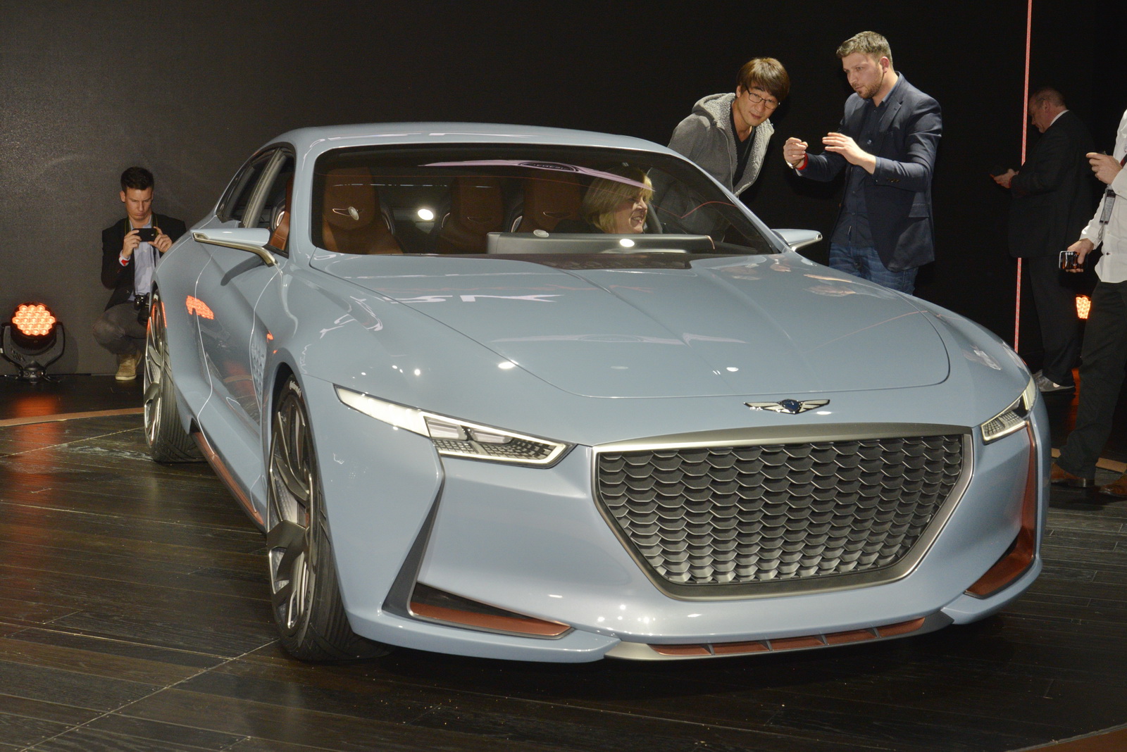 G90 (non importata in Italia), lunga 520 cm, che rappresenta un’alternativa alle BMW Serie 7 e Mercedes Classe S. L’azienda coreana lancerà fra poco tempo anche una quattro porte di lunghezza più contenuta, avversaria delle Alfa Romeo Giulia e BMW Serie 3, il cui stile viene in parte anticipato dallo studio