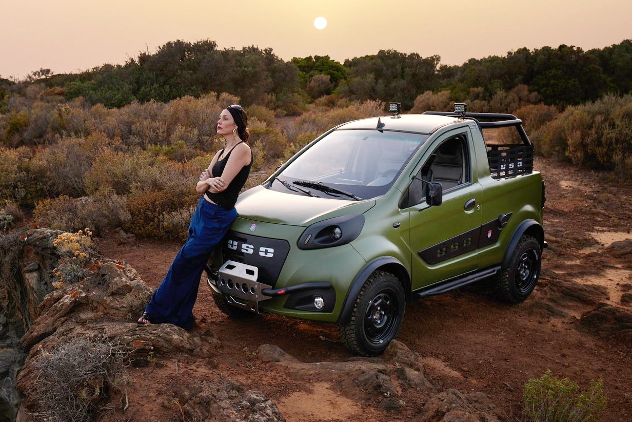 Ultima creazione della celebre officina romana, la Giannini Uso è un quadriciclo pesante al 100% elettrico il cui look avventuroso si rifà in parte alla Fiat Panda 4x4.