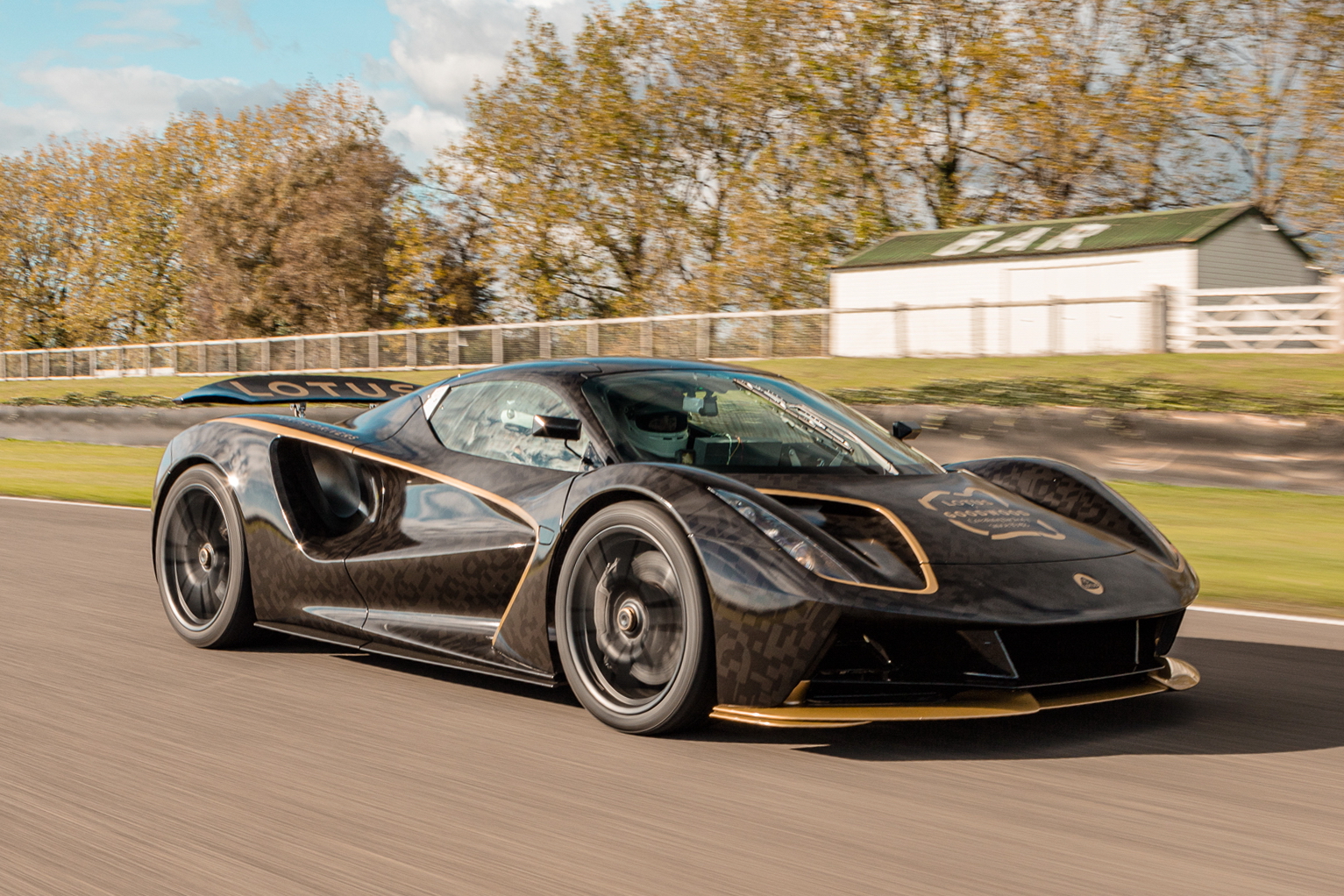 LE PRIME TRE - La Lotus Evija è l’hypercar elettrica, primo frutto concreto del nuovo corso intrapreso dalla casa inglese parte del gruppo cinese Geely, che l’ha acquisita nel 2017. La Evija ha fatto il suo debutto pubblico in occasione della Goodwood SpeedWeek, dove ha partecipato, tra l’altro, alla Supercar Run. A Goodwood erano presenti tre esemplari di pre-produzione della Lotus Evija: uno in di colore Solaris Yellow e due in livrea nero e oro, che ricorda quelle quella delle Lotus di Formula 1 degli Anni 80.