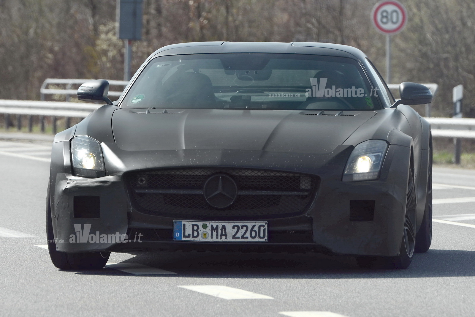 OLTRE 600 CV - Si tratta di modifiche aerodinamiche necessarie per far fronte alle maggiori prestazioni che la coupé tedesca saprà offrire. Stando alle informazioni raccolte, il 6.2 V8 normalmente aspirato sviluppato dalla AMG, è stato profondamente rivisto nei suoi organi interni per portare la potenza da 571 a oltre 600 CV che, uniti a un risparmio di peso di circa 50 kg grazie all'ampio uso di fibra di carbonio, dovrebbe permettere alla SLS Black Series di accelerare da 0 a 100 km/h in circa 3,5 secondi e raggiungere i 335 km/h. Per la SLS “normale”, la Mercedes dichiara uno scatto da 0 a 100 km/h in 3,8 secondi e una velocità massima di 317 km/h. Ovviamente, sulla Black Series ci saranno anche una diversa taratura per le sospensioni a controllo elettronico e il differenziale autobloccante, un impianto frenante potenziato, e pneumatici di maggiori dimensioni per incrementare l'impronta a terra e quindi la tenuta di strada.