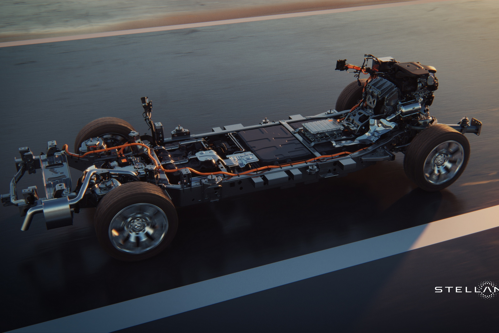 NON SOLO ELETTRICO - Stla Frame nasce per veicoli con lunghezza fra 549 e 594 cm e prevede “raffinatezze” come le sospensioni indipendenti davanti e dietro e le molle ad aria. Nella variante elettrica, è usata una tecnologia a 800 volt, con potenza di ricarica fino a 350 kW. Le batterie possono avere una capacità fra 159 e 200 kWh, con autonomie stimate fino a 800 km (secondo il ciclo di omologazione statunitense). La variante EREV prevede un motore a benzina che aziona un generatore di corrente, mentre la trazione rimane sempre e solo elettrica. La batteria è più piccola e con tecnologia a 400 volt, con potenza massima di ricarica di 175 kW. Con una carica e un pieno di benzina, secondo la casa si possono percorrere in media 1.100 km. Per entrambe, sono previsti due motori: uno per asse, con potenze fino a 340 CV l’uno. La flessibilità della piattaforma, comunque, permette di ricavare con una certa facilità versioni con motore solo a benzina o con tecnologia ibrida.