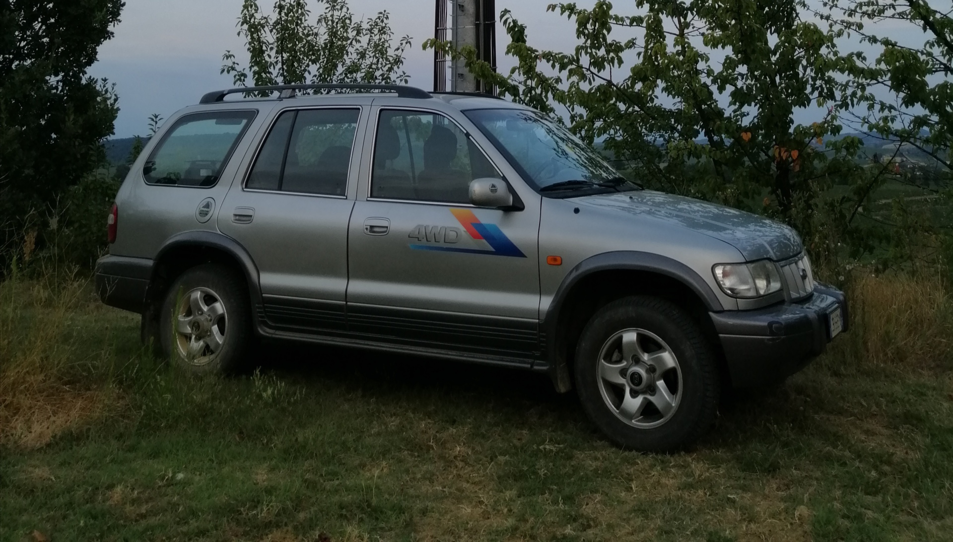 La dotazione è molto semplice, ma per un economico fuoristrada coreano del 2002 direi che non manca nulla: chiusura centralizzata, autoradio, climatizzatore manuale, 4 vetri elettrici, specchietti elettrici e riscaldabili, porta-bibite vari, regolazione lombare per il guidatore, bracciolo anteriore regolabile con vano, divano posteriore frazionato con schienali regolabili e barre sul tetto.